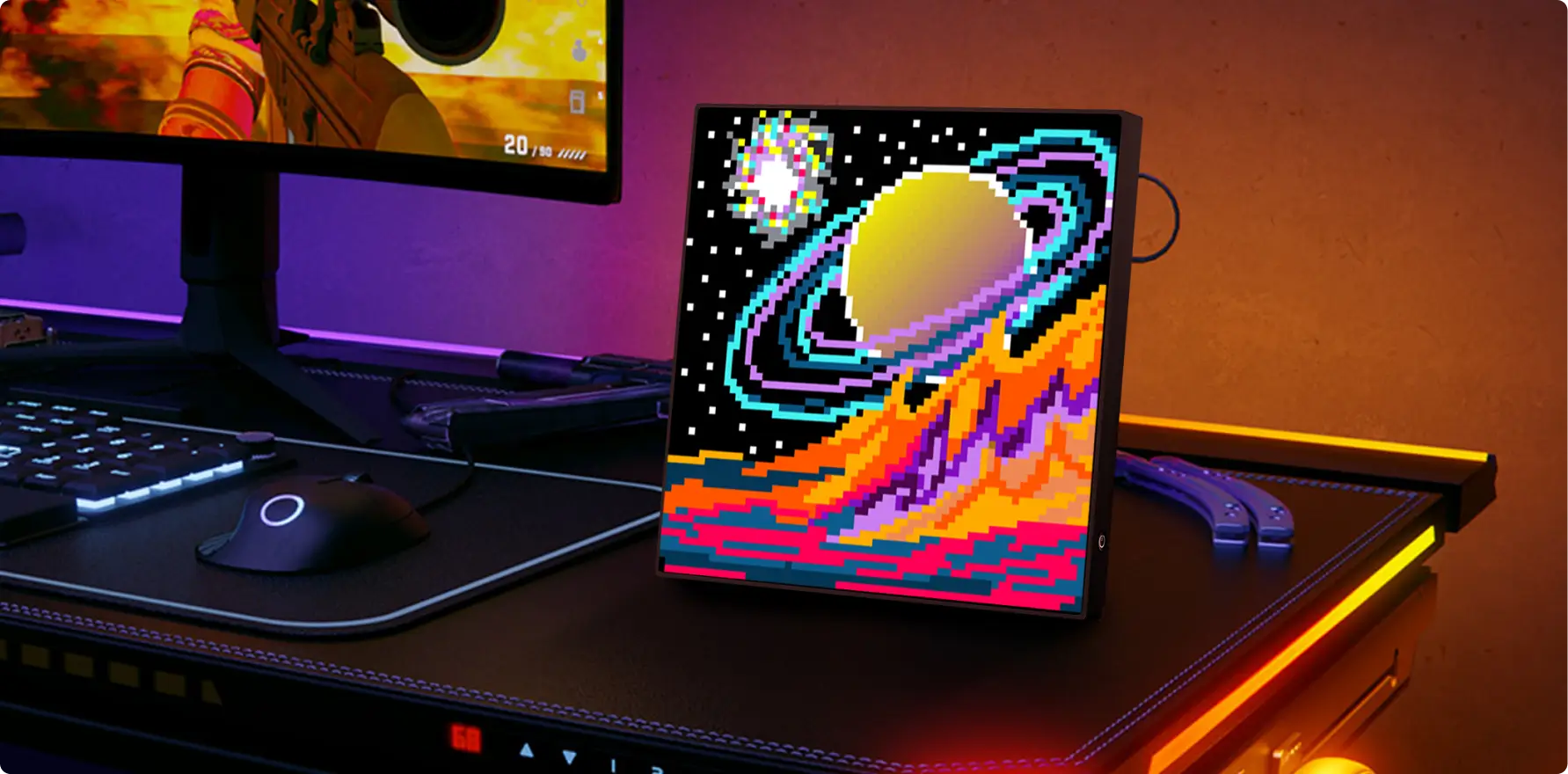 Our first-generation height-adjustable desk with dynamic lighting synced to your setup