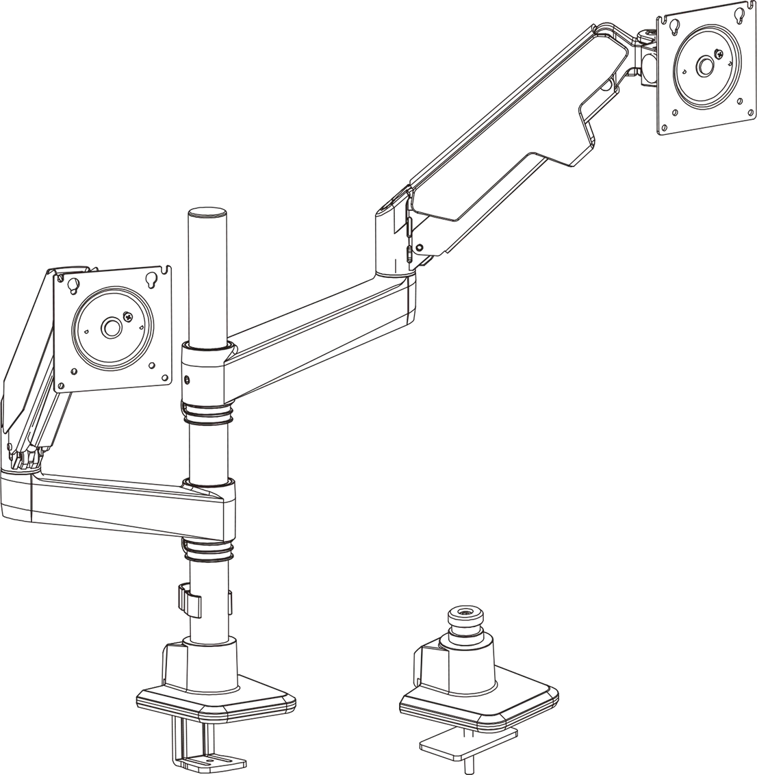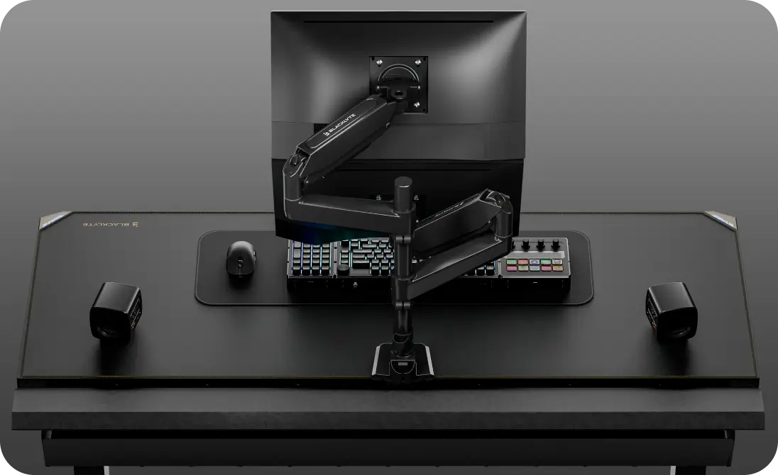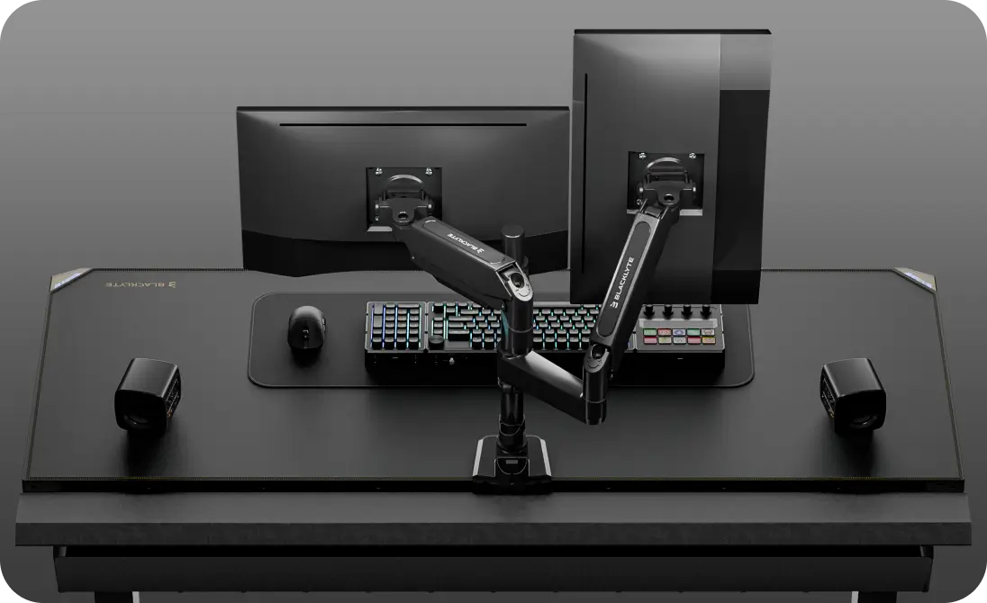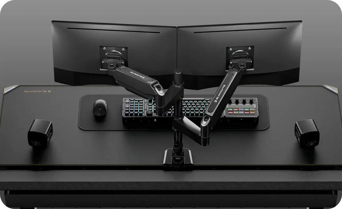 Upgrade from single arms — the Atlas Dual Monitor Arm mounts an additional monitor to double your flexibility and workspace control, meeting your expanded gaming and workspace needs.