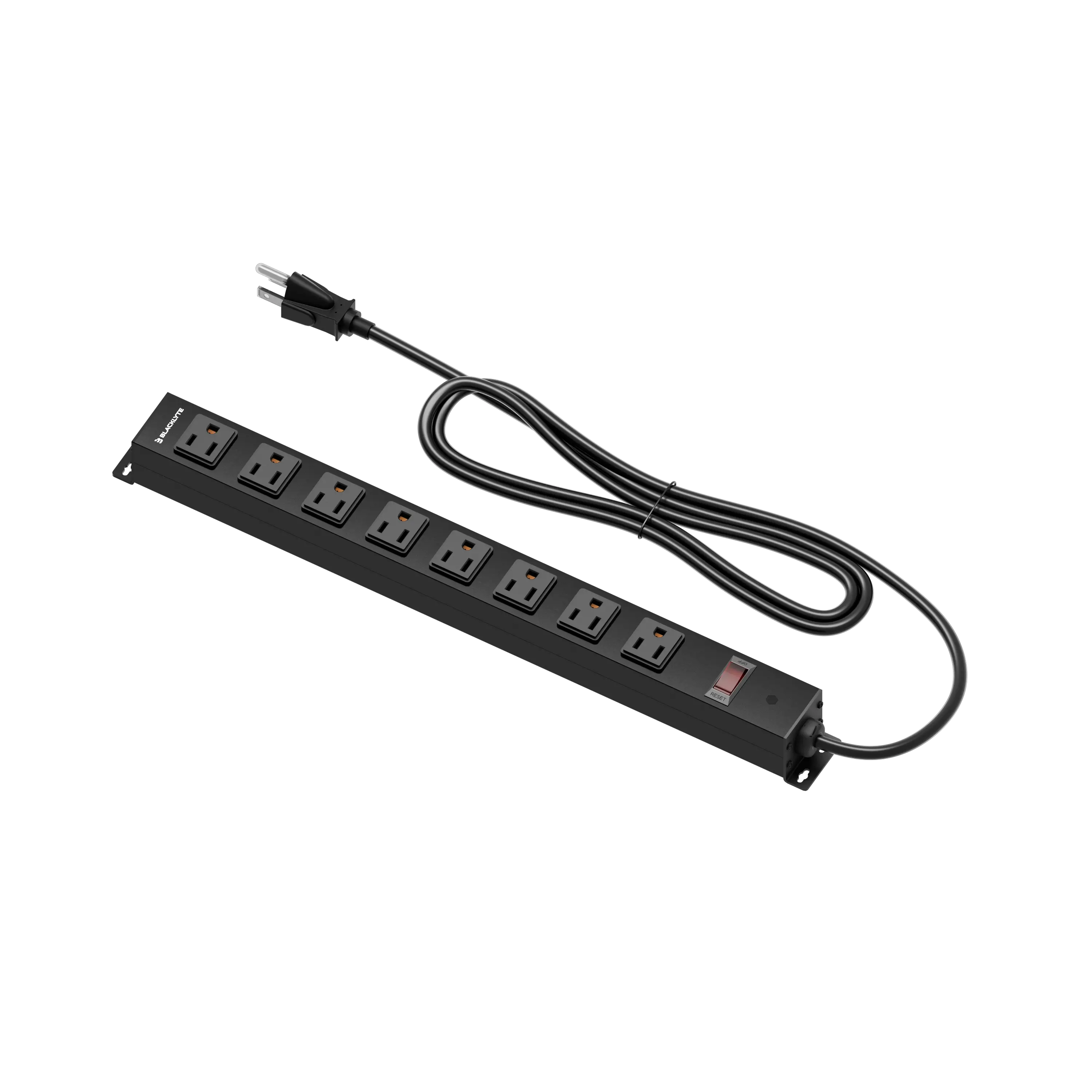 Premium metal power strip with surge protection and wall-mount design
